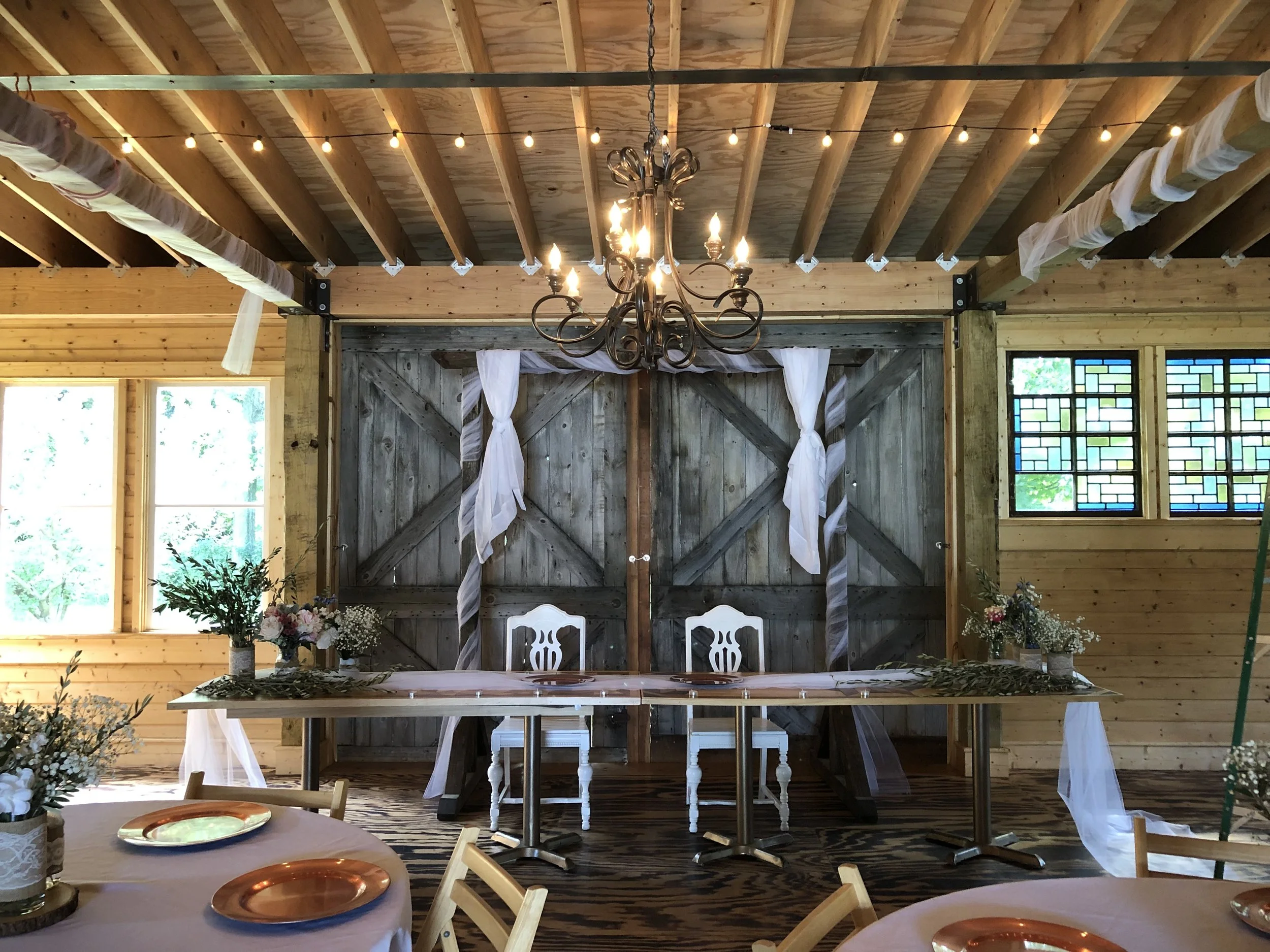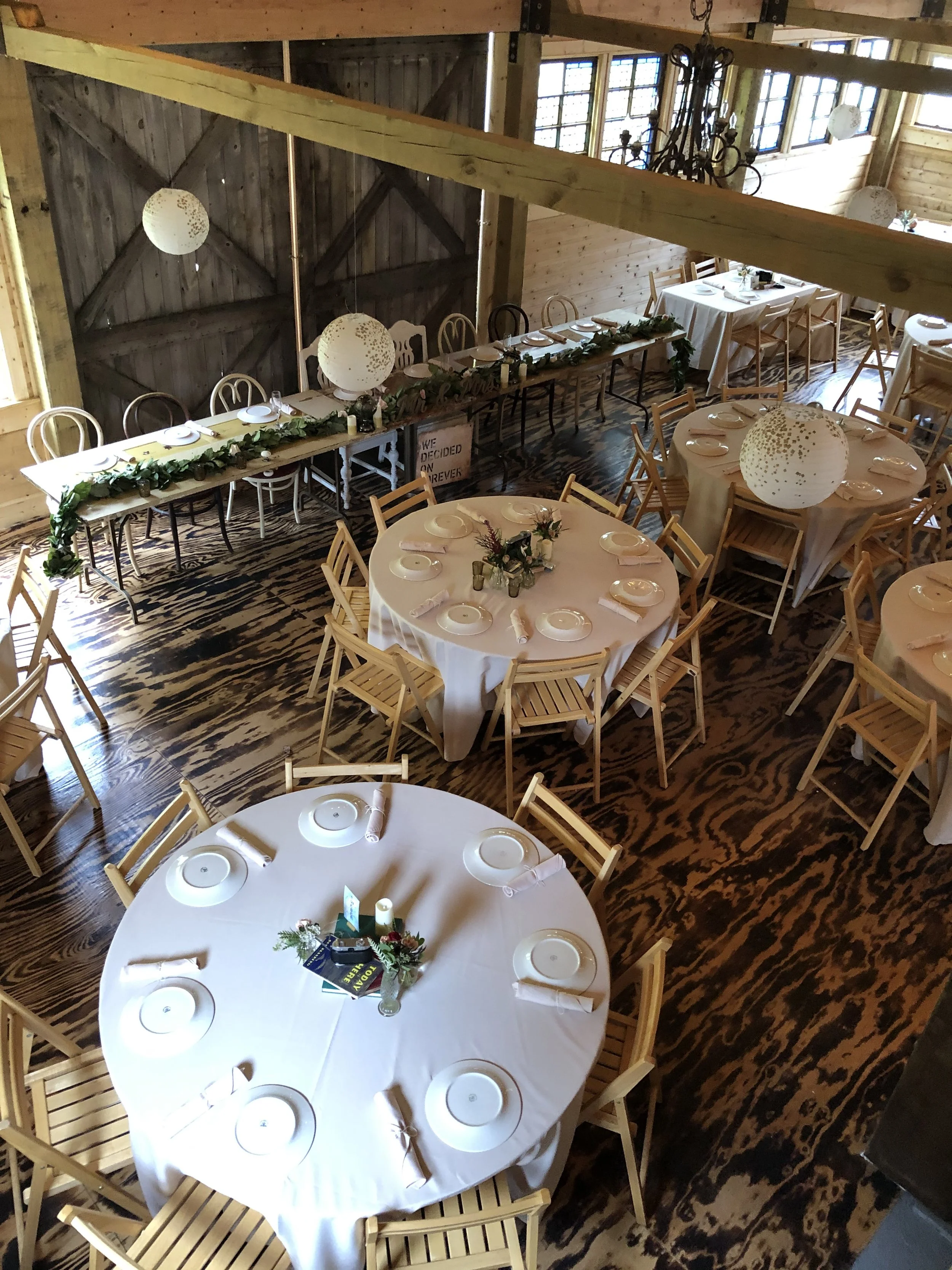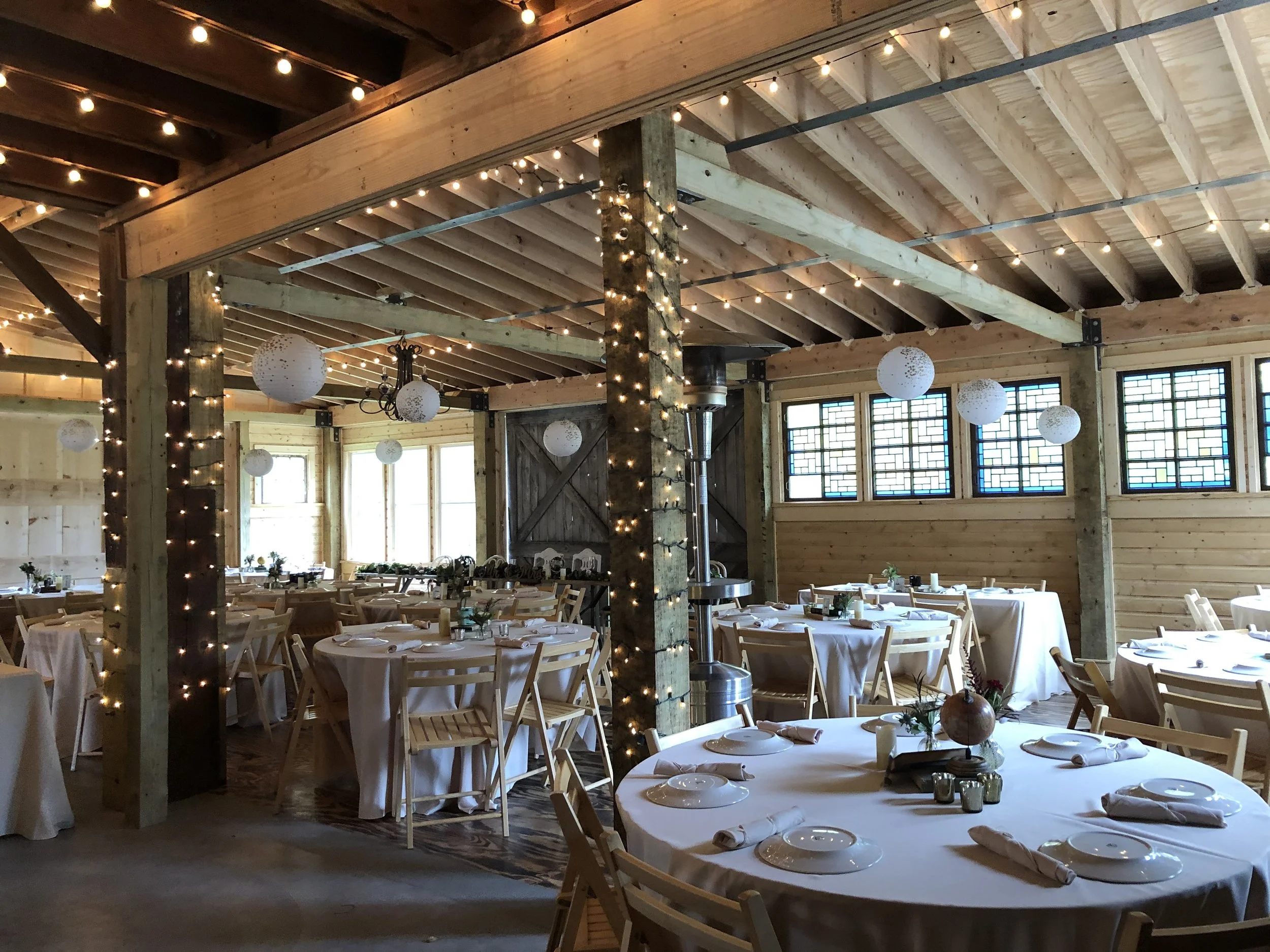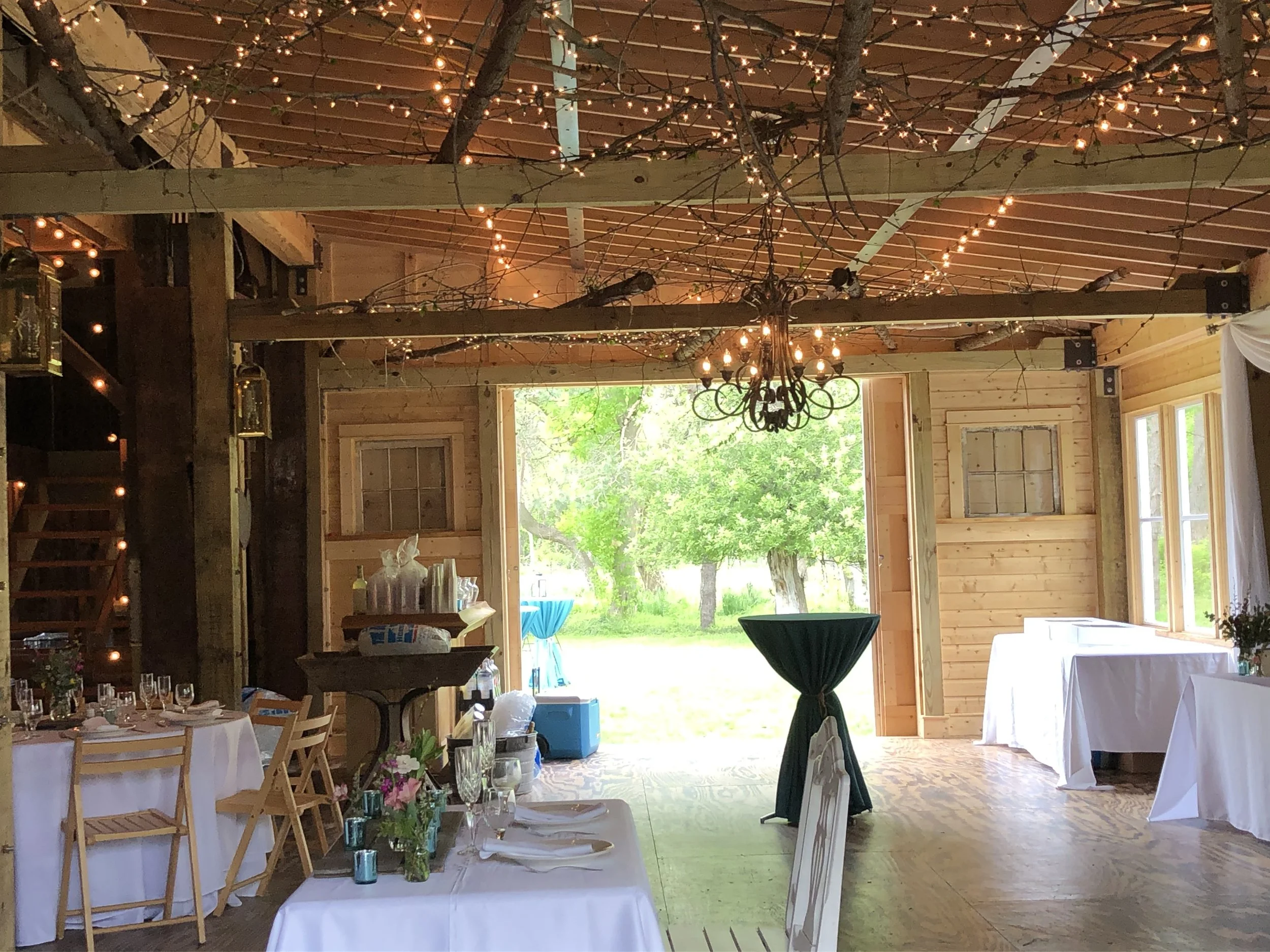 Barn amenities include: tables, chairs, upstairs stage, custom bar, large patio heaters for cooler weather, wifi.